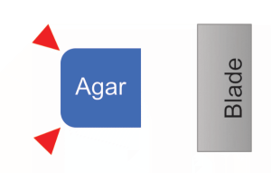 * Round the corners of the agar (red arrows, below) by slicing them off with a razor blade